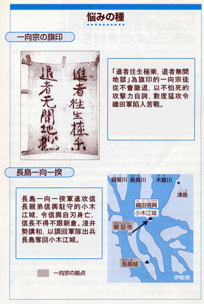 東海地方淨土真宗本願寺派(一向宗)的布教據點是願証寺,位於揖斐川、木曾川交界河口的三角州上的要塞。