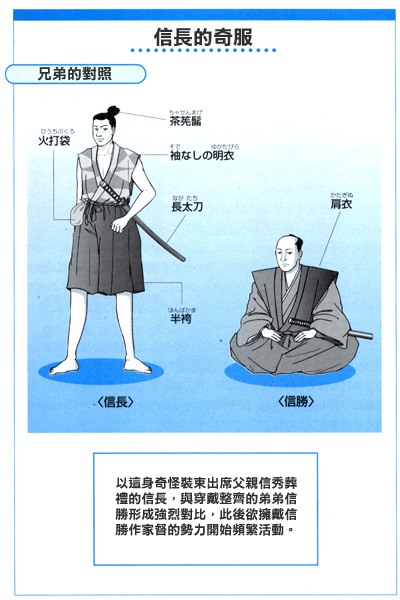 信長從少年期至青年期的裝扮,是與那古野城主身份毫不相襯的茶筅髷、沒袖子的明衣、