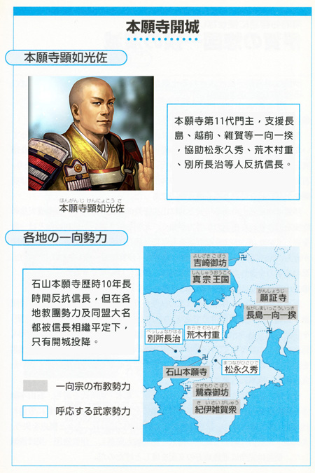 擁有深闊護城河、屹立在淀川河口山丘上的堅城・石山本願 寺,門主顯如在同盟勢力相繼滅亡後,在朝廷的仲介下,向 信長開城投降。